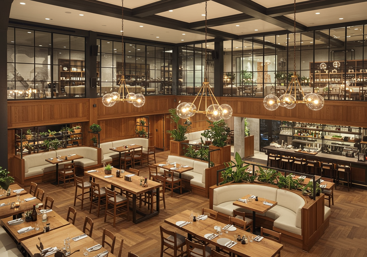 Get the Look: The comfortable elegance that emanates from Herb & Wood’s 9,500-square-foot restaurant can translate to any room in a home. From an oversized tufted couch in the living room in a bold deep blue or green to an accent chair in the bedroom with both fabric and wooden accents or even a leather banquette in your kitchen’s breakfast nook, the possibilities for recreating this design are endless.