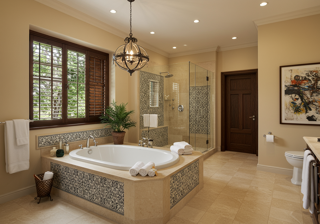 Get the Look: This attention to detail can be easily carried over into home bathroom design, where an emphasis on beautiful elements can often be forgotten. The replacement of standard shower tiles with hand-painted, patterned, or a custom tile design can bring the room to life and make a bath, shower, or simply the time we spend getting ready every morning much more enjoyable.