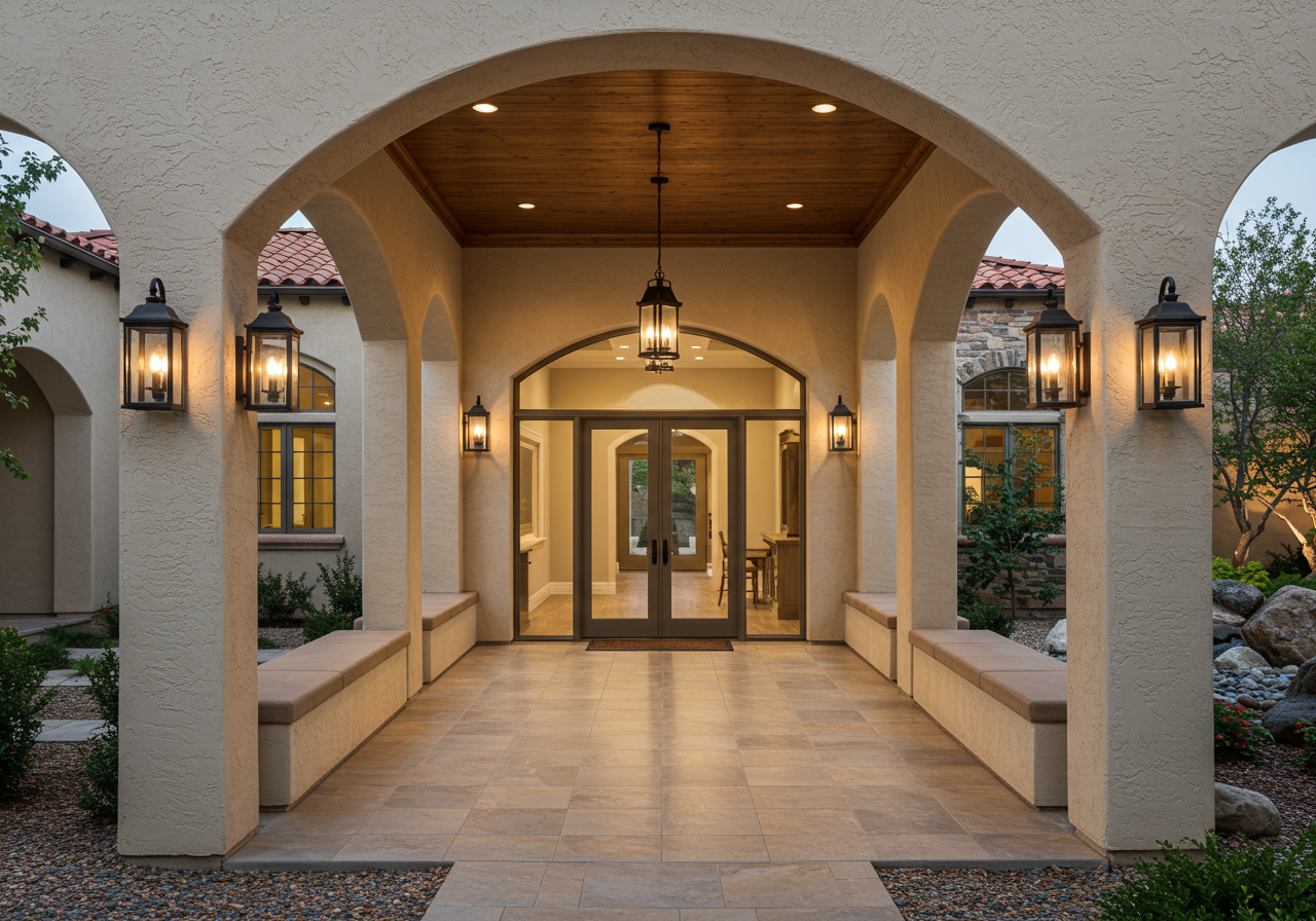 Light and bright, the sprawling estate offers 6 ensuite bedrooms with walk-in closets and a fantastic detached guest house with backyard access. Featuring its own loggia, the master suite features dual baths and a fireplace. Eight full baths and 2 half baths are showcased, and rich appointments include travertine and wood flooring, dramatic ceilings with exposed blonde wood beams, an abundance of arched French doors and windows, crown molding, a wine cellar, dual 2-car garages, owned whole-house solar, and gorgeous grey- and white-toned Carrara marble, Volakas marble imported from Greece and other rich stonework in baths.