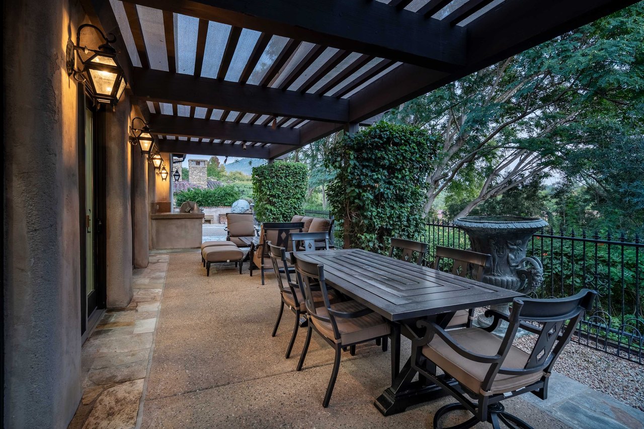 This masterpiece is the epitome of luxury, beauty, and privacy, enveloped by lush landscapes within a premier guard-gated golf, tennis, and fitness community. Perfectly positioned, this exquisite single-level residence offers 4 ensuite bedrooms, 4.5 baths, an elegant office or formal dining option, a grand two-story great room, and a state-of-the-art kitchen designed for the discerning chef, complete with casual dining space. Step into a serene, gated courtyard adorned with elegant stone patios and near the soothing sound of waterfalls. The backyard showcases mature greenery, an inviting loggia, and a built-in BBQ for alfresco dining. Natural light floods through the interiors, accentuated by clear-story windows and French sliding doors, harmoniously blending San Diego's famous indoor and outdoor living. The majestic rotunda foyer, flanked by stone columns, ushers you into a gallery-style corridor. The expansive, adjoining flex space can easily serve as a sophisticated dining room or a private office to fit your lifestyle. The Great Room is a true testament to luxury with its cozy fireplace, built-in entertainment hub, and an adjacent dining space opening to the outdoor loggia. For culinary aficionados, the kitchen is nothing short of an absolute dream with its spacious layout, granite countertops, generous island, and top-tier Viking and Sub-Zero appliances. Retreat peacefully to the opulent primary suite, boasting a fireplace, plush sitting area, open-air shower, spa tub, dual vanities, and a walk-in closet. The attached three-car garage also makes for the perfect closet for your car collection. The historic and charming village of Rancho Santa Fe completes the canvas of this masterpiece, zoned for the nearby award-winning K-8 public school, Roger Rowe. *Some photos have been virtually staged*